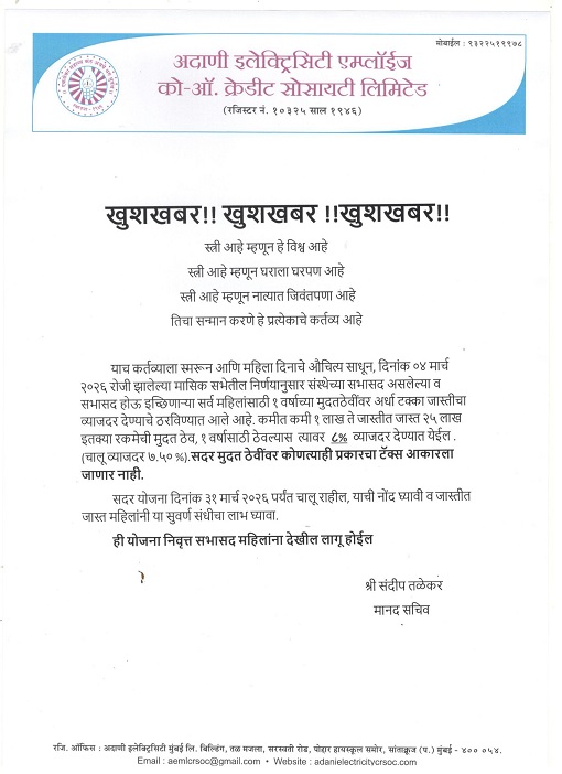 "उत्त्पन्नापेक्षा गरजा जास्त” हे व्यस्त समीकरण मानवी जीवनातील एक न उलगडणारे कोडे आहे. आकस्मित ओढवणारे दुर्धर प्रसंग, संकटे, आजारीपणा वगैरे घटना मानवी जीवनात घडत असतात. अशावेळी नितांत गरज असते ती आर्थिक मदतीची. ही गरज थोड्या बहुत प्रमाणात का होईना भागविण्याचे काम सोसायटी करीत आहे. सोसायटीने सभासदांना वेगवेगळ्या प्रकारची कर्जे देऊन त्यांच्या संसारिक जीवनात बहुमोल सहाय्य करतानाच सभासदांना बचतीचे महत्व पटवून दिले आहे. सोसायटी व सभासद यांचे संबंध इतके जिव्हाळ्याचे आहेत की त्यामुळेच सोसायटी, आस्थापनातील एक प्रमुख अंग बनली आहे आणि म्हणूनच "एकमेका सहाय्य करू, अवघे धरू सुपंथ" हे संयुक्तीक ब्रीदवाक्य असलेल्या ह्या सोसायटीचे सभासदस्यत्व आपल्या आस्थापनाच्या बहुसंख्य कर्मचा-यांनी स्विकारले आहे.