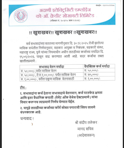 "उत्त्पन्नापेक्षा गरजा जास्त” हे व्यस्त समीकरण मानवी जीवनातील एक न उलगडणारे कोडे आहे. आकस्मित ओढवणारे दुर्धर प्रसंग, संकटे, आजारीपणा वगैरे घटना मानवी जीवनात घडत असतात. अशावेळी नितांत गरज असते ती आर्थिक मदतीची. ही गरज थोड्या बहुत प्रमाणात का होईना भागविण्याचे काम सोसायटी करीत आहे. सोसायटीने सभासदांना वेगवेगळ्या प्रकारची कर्जे देऊन त्यांच्या संसारिक जीवनात बहुमोल सहाय्य करतानाच सभासदांना बचतीचे महत्व पटवून दिले आहे. सोसायटी व सभासद यांचे संबंध इतके जिव्हाळ्याचे आहेत की त्यामुळेच सोसायटी, आस्थापनातील एक प्रमुख अंग बनली आहे आणि म्हणूनच "एकमेका सहाय्य करू, अवघे धरू सुपंथ" हे संयुक्तीक ब्रीदवाक्य असलेल्या ह्या सोसायटीचे सभासदस्यत्व आपल्या आस्थापनाच्या बहुसंख्य कर्मचा-यांनी स्विकारले आहे.